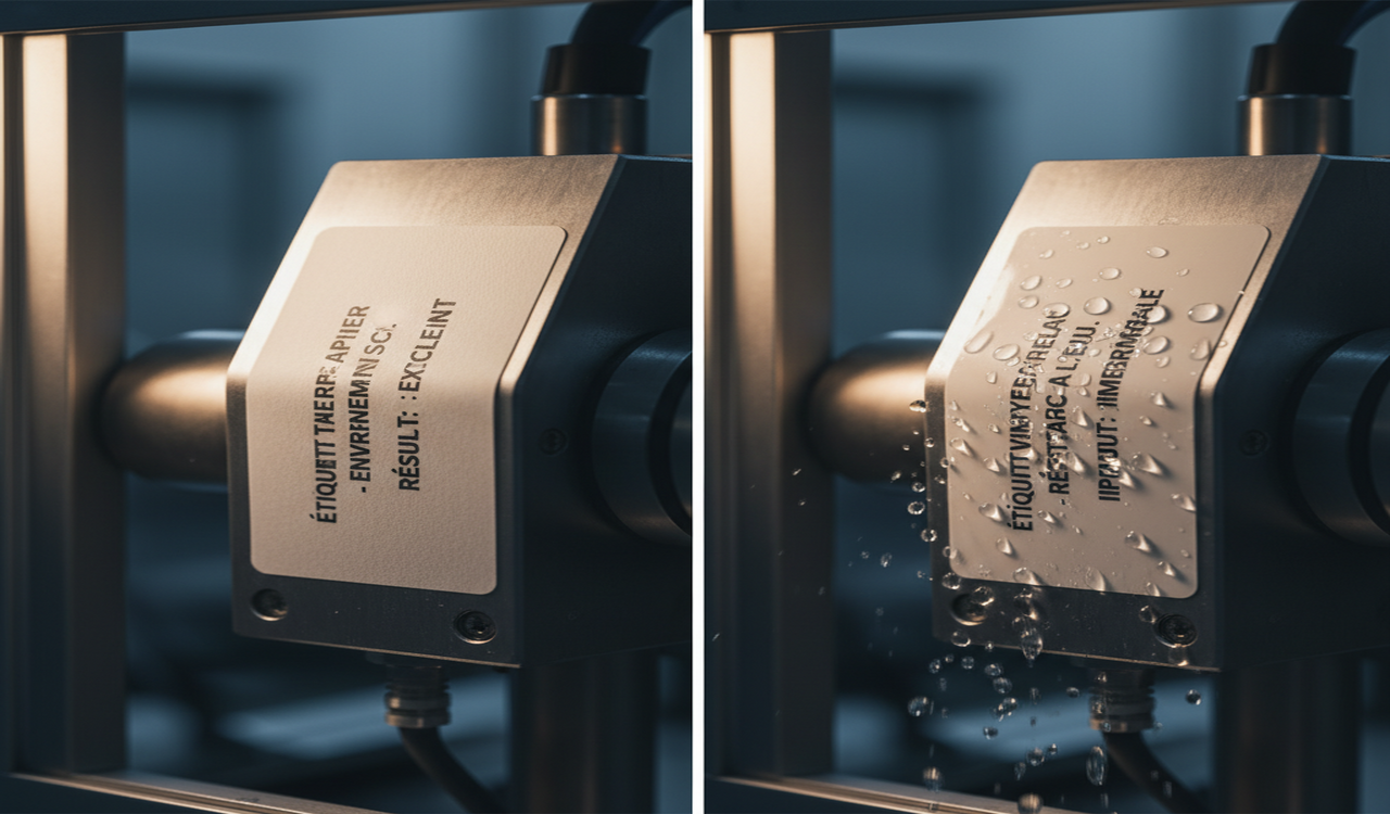 💡 Belangrijk: Op plaatsen waar vloeistoffen, temperatuurschommelingen of intensief contact voorkomen, investeert u beter in duurzame vinyl etiketten met aangepaste kleeflaag. In stofvrije, droge ruimtes blijft een goed gekozen industrieel papier een voordelige én performante oplossing.